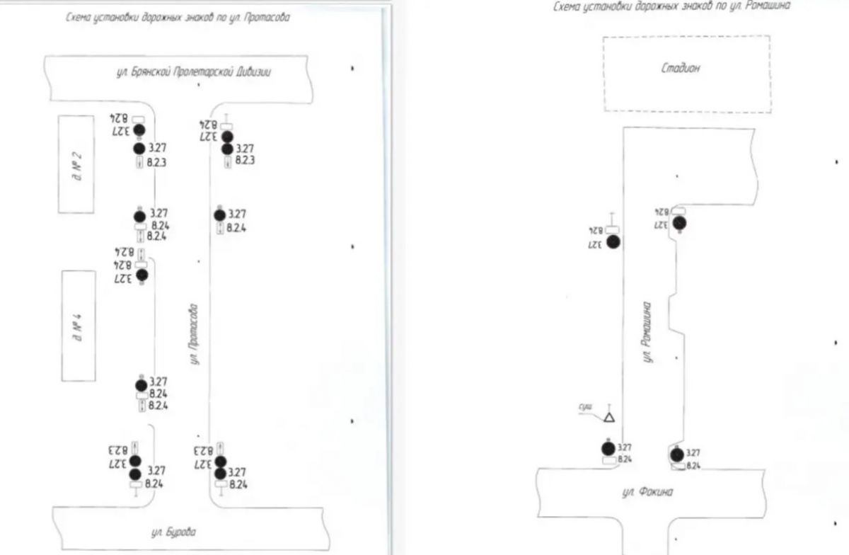 Новые дорожные знаки установлены на улицах Протасова и Ромашина — на участке от улицы Фокина до стадиона «Динамо». Введены ограничения, запрещающие остановку и стоянку автотранспорта.