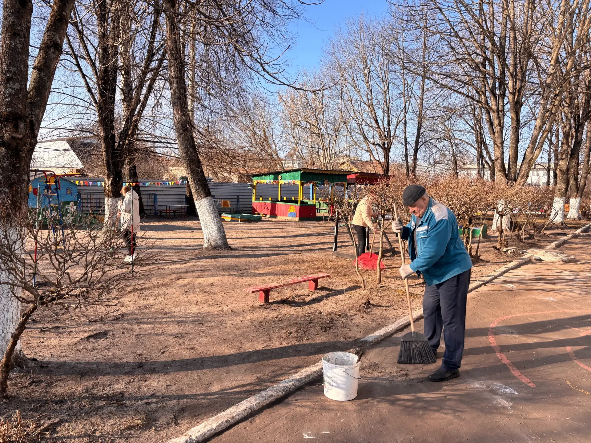 Педагоги, воспитатели, школьники и студенты тоже вышли сегодня на уборку. Подмести подведомственные территории, вынести прошлогоднюю листву с участков, посадить новые цветы, побелить бордюры, покрасить заборы, ограждения и детское оборудование не прогулочных площадках. Всё для того, чтобы образовательный процесс проходил в чистоте и порядке.