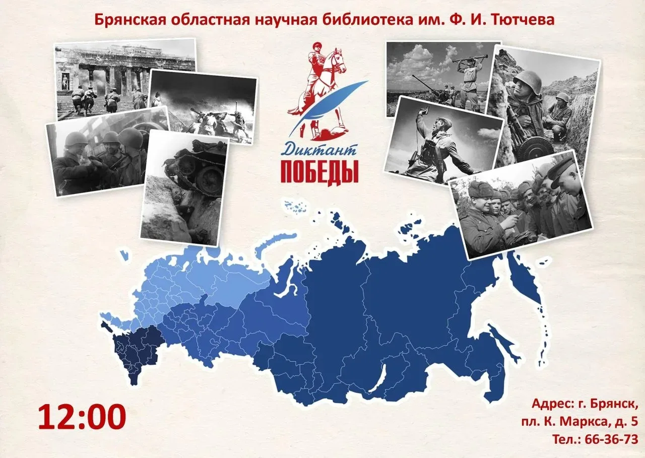 Акция проводится в очном и дистанционном формате. Брянская областная научная универсальная библиотека вновь станет одной из официальных площадок (регистрация — в день проведения акции непосредственно в библиотеке). Для участия онлайн необходимо зарегистрироваться на официальном сайте «Диктанта Победы».