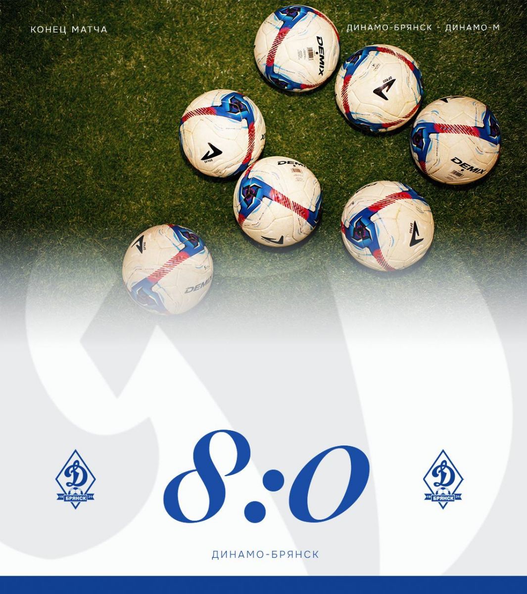 «Динамо-Брянск» - «Динамо-М» - 8:0 (Даниил Коноплев - 5, Артём Медведев - 2, Владислав Дрогунов (пенальти).
