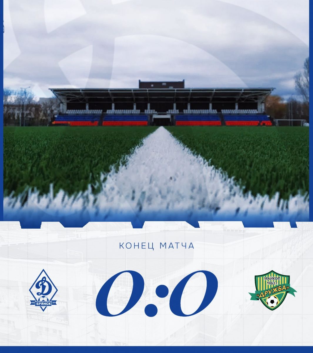 Футбольный клуб «Динамо-Брянск» провел встречу с майкопской «Дружбой». Основное время матча не выявило победителя – на табло остались нули.