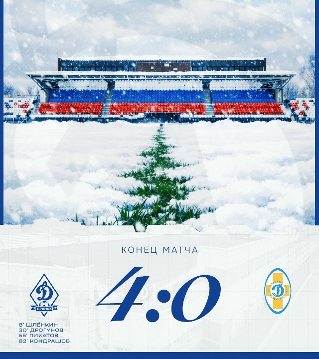 В конце матча счёт был 4:0 в пользу брянских футболистов. Как пишет ФК «Динамо-Брянск», авторами голов стали Дмитрий Пикатов, Владислав Дрогунов, Александр Шлёнкин, Вадим Кондрашов. Ставропольская команда «Динамо» не забила ни одного мяча в ворота «тёзок» из Брянска.