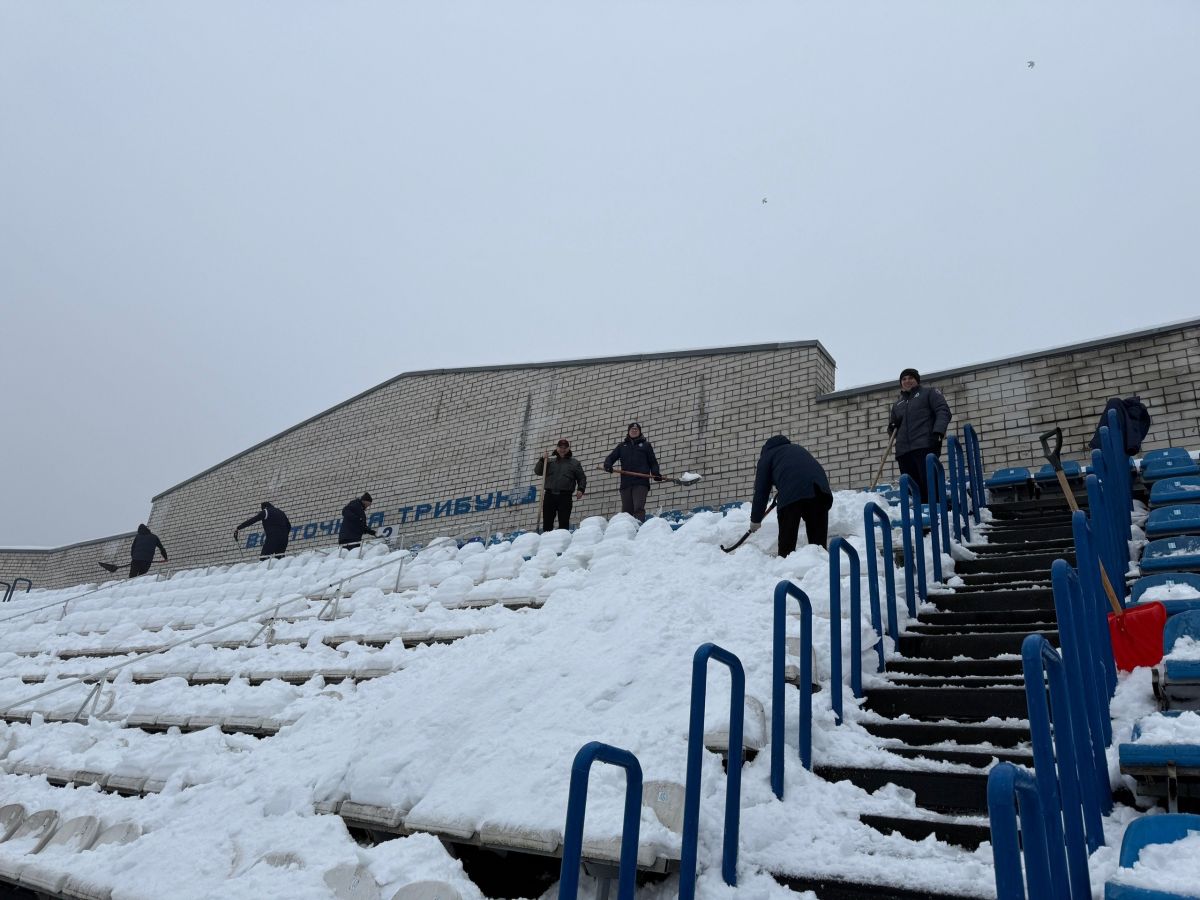 Стадион после снежной и суровой зимы начали готовить к сезону: включили подогрев, работает спецтехника по расчистке от снега. Сотрудники футбольного клуба «Динамо-Брянск», специалисты и воспитанники спортивной школы также не остались в стороне - они дружно убирают снег с трибун.