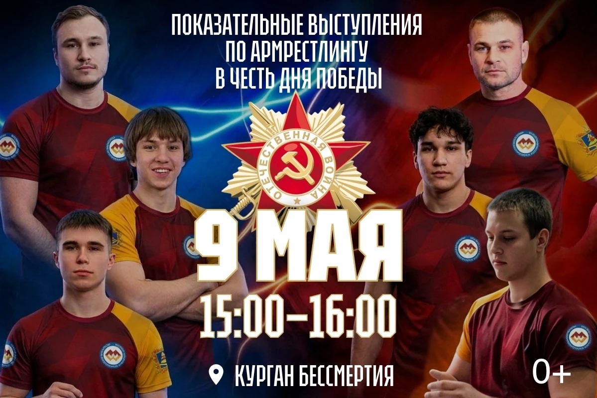 Показательные выступления по армрестлингу состоятся 9 мая 2026 года в знаковом памятном месте Брянска - на Кургане Бессмертия.